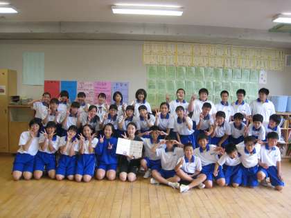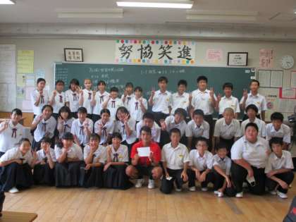 3週間お世話になった教育実習生の先生と、明日でお別れとなってしまいました。明日は富山市新人大会のため、今日がそろってお礼が言えるラストチャンス。記念の集合写真を撮りました。