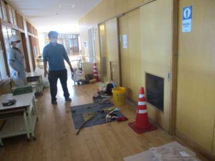 なるべく授業に支障がないように休日も作業を進めています。本日も、丁寧に作業を進めていただいています。