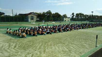 本日は岩瀬スポーツ公園での個人戦に臨みました。開会式では、コロナ対策に配慮しての運営についての説明がありました。