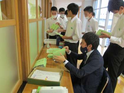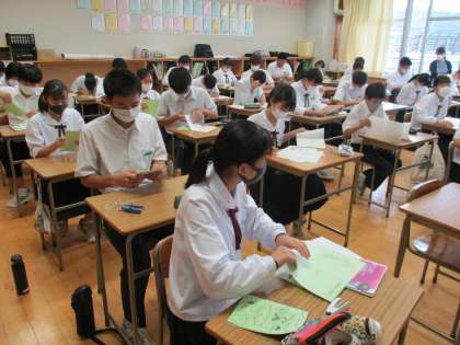 4限の学活の時間に、校外学習のしおり製本と読み合わせを行いました。修学旅行の代替え行事であり、生徒たちは楽しみにしています。自分たちで決めたルールやマナーを守り、思い出に残る有意義な1日にしましょう。10月9日(金)は、今のところ天気もよいようです。それまでに、体調を崩さないようにして過ごしましょう。
