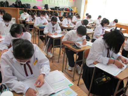 5限目の総合的な学習の時間に、3回目の進路学習を行いました。前回までに取り組んだアンケートを元にした進路適性調査の結果が届きました。シールをノートに貼り、現在の自分の特徴や適性を知りました。客観的な資料で、よく知っているつもりの自分のことについて、見つめ直す機会となりました。今後も、自己理解を深めながら、進路について考える学習を進めています。