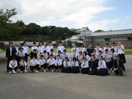 集合時間に全員が大きなけがや事故もなく集合することができました。話を聞くと、道に迷ったり、時間通りに進まずに、見学場所を飛ばしたりした班もあったようです。集合完了後、金沢城をバックに学級ごとに写真を撮りました。無事終了した安心からか笑顔が光っていました。
