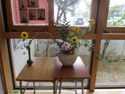 定期的に地域の方が有志で足を運んでくださって、生徒玄関に季節のお花を生けてくださっています。