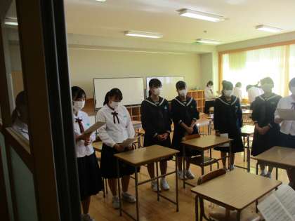 中間考査も終わり、いよいよ来週の土曜日に行われる合唱コンクールの練習にも力入ってきました。3年生として、すばらしい合唱をつくろうと、指揮者、伴奏者、パートリーダーが力を合わせて頑張っています。練習にも制約があり、短い練習期間ですが思い出に残るコンクールにしましょう。