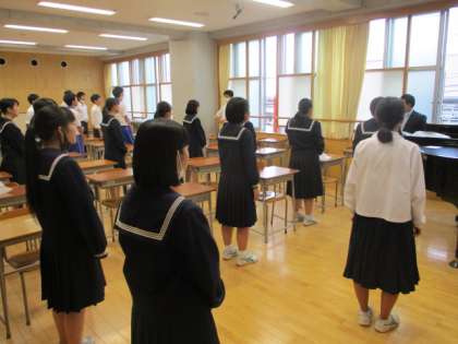 クラスごとに一丸となって一生懸命取り組む姿を見ると、いろいろな場面に「最後の」の修飾語のつく学年であることが実感されます。最後の藤ヶ丘祭、最後の合唱コンクールが、思い出に残るものとなるように、練習から声と心をそろえようと頑張っています。