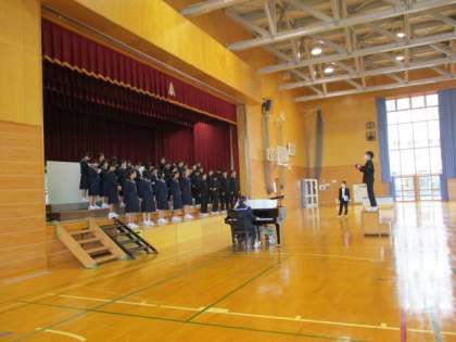本日、31日に行われる合唱コンクールのリハーサルを行いました。感染拡大防止のため昨年度までと異なる点があり、戸惑った様子も見られました。合唱も残りの一週間でまだまだ改善できることが課題として見つかりました。体育館中に響き渡る歌声になるように、一人一人が意識を高くもちましょう。