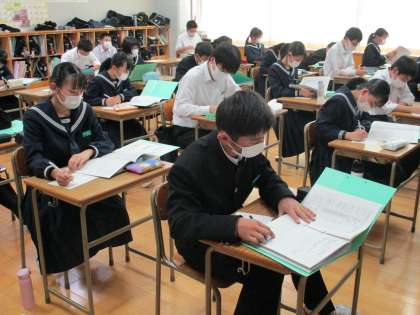 総合の時間に、先日行われた「進路説明会」の資料で、目を通していない箇所の読み合わせをしました。