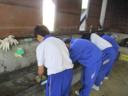 「来たときよりも美しく」を目指して、使わせて頂いた道具をきれいに洗っています。協力して後片付けに取り組んでいる姿が見られました!