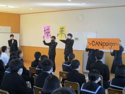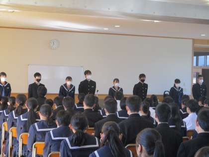 また、活動計画案の発表では、「Go To School」と題して、登校時間を早くしようと呼びかけていました。これからも学年生徒会が中心となって、充実した学校生活となるようにしたいですね。
