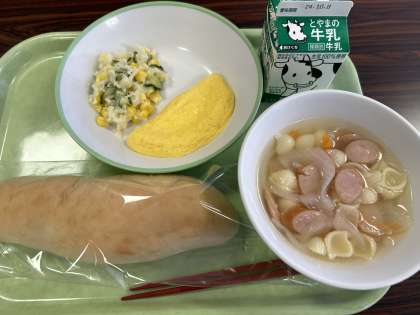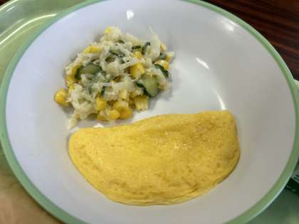 せっかくのカラフルサラダでしたが、コーンとチーズオムレツの黄色がかぶって残念でした。赤が入れば良かったのかな?パプリカとか・・・
