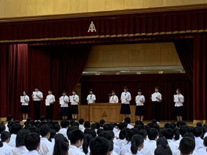 本日、6限目に生徒会役員の認証式が行われました。新しい生徒会役員の今後の活躍が楽しみです!