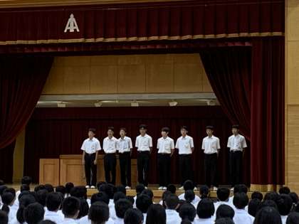 10月5日土曜日に開催される駅伝競走大会の壮行会を行いました。全校生徒で駅伝部に応援の気持ちを伝えました。