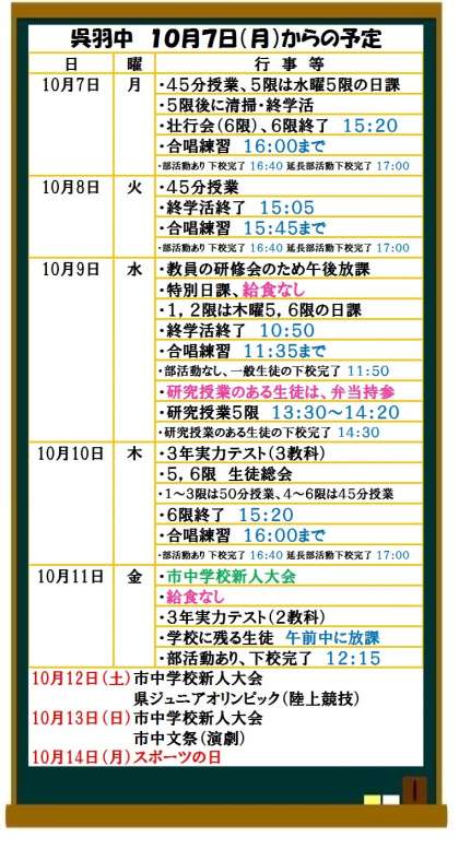 10月7日(月)からの予定