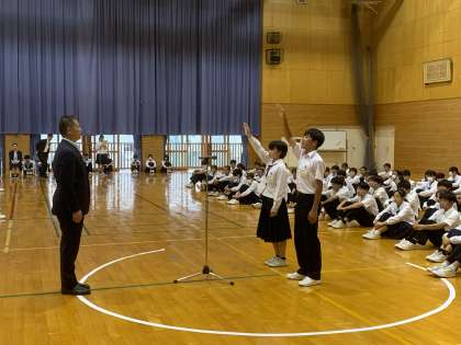 本日、6限目に富山市中学校新人大会壮行会を行いました。各部から大会への意気込みが語られました。全校生徒で応援歌を歌い、応援の気持ちを伝えました。