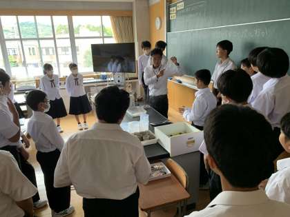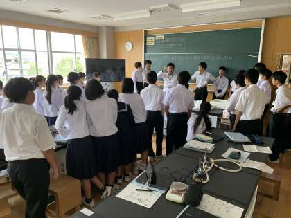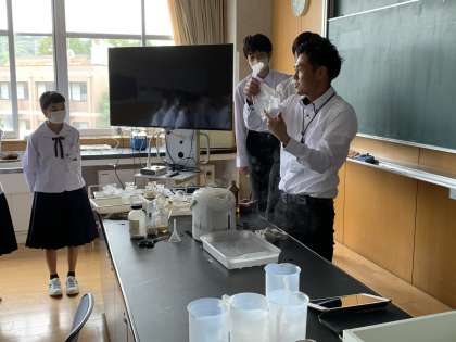 エタノールの状態変化についての実験をしています。 (写真は1年2組)
