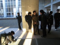 用務員さんが、職員玄関前の段差を修理してくださっています。たいへんな作業をして頂き、ありがとうございます。