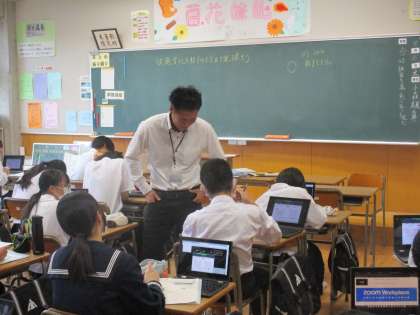 授業の様子です 上 理科 中 数学少人数 下 社会
