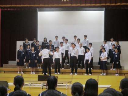 学年でクラスごとに合唱のリハーサルを行いました。目の前の本番に向けて、真剣な表情で歌っていました。