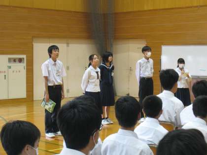下:学年代表から、先日のリハーサルの振り返りと激励の言葉がありました。