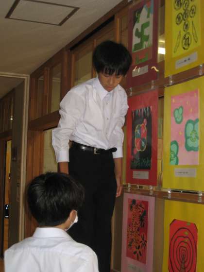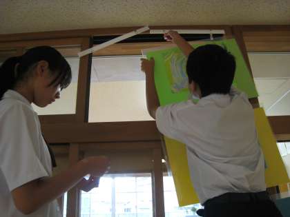 1学年展示:美術作品の展示準備中2