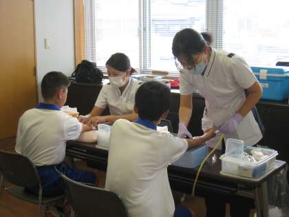 たくさんの採血場所に分かれて、順番に採血の検査を受けます。