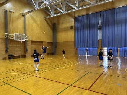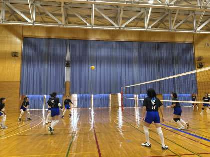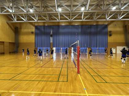 体育館では、バレーボール部が新湊中学校と練習試合をしています。