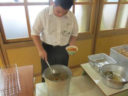 食べ始めました。 おかわりじゃんけんがもりあがります。