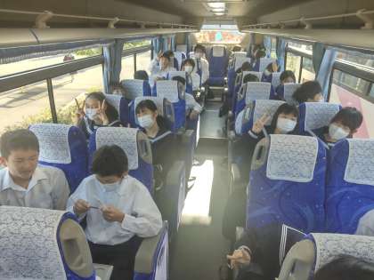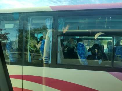 高岡に向けて出発です。隣のバスに乗っているのは3組のみんなです!元気に出発!