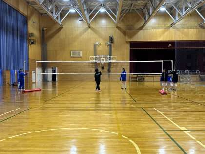 上 バレーボール部 ネットの準備