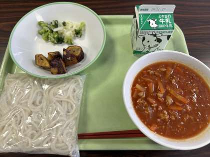 月曜日の夕食後、大量の玉ねぎを刻んでいる妻。横には大量のひき肉。もしかしたらと思い、「ミートソース作っているの?」と尋ねると、「そうだよ」と一言。あのー、水曜日の給食、ミートソースなんですけどと勇気を振り絞って言いました。あっ、これ冷凍して(進学している)子供たちに送る。と言っていたのに、昨日の夕食はスパゲッティ・ミートソースでした。ソフト麺ではありませんでしたが・・・