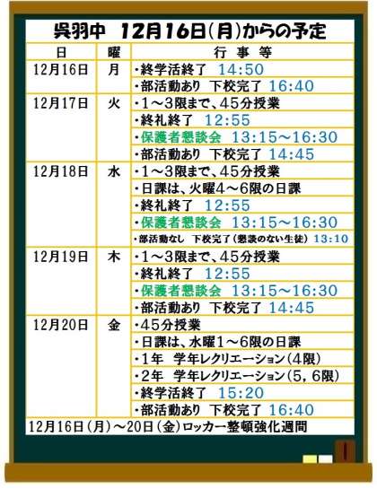 12月16日(月)からの予定
