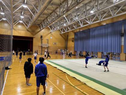 体育館では、バドミントン、新体操、バレーボール、卓球と活動を始めました。