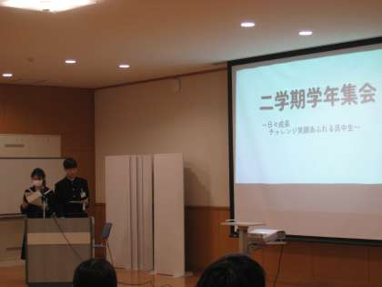 学年集会が行われました。1学年生徒会の生徒による各クラスの反省や先生方の話がありました。