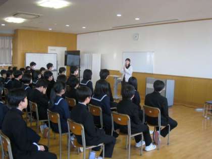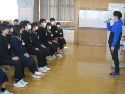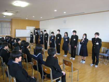 各クラスの学級代表が今学期を振り返りました。後半は学習と生活について話がありました。