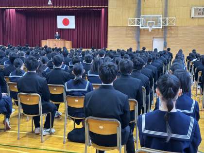 終業式です。 1年の締めくくりの日。 生徒の目は真剣です。