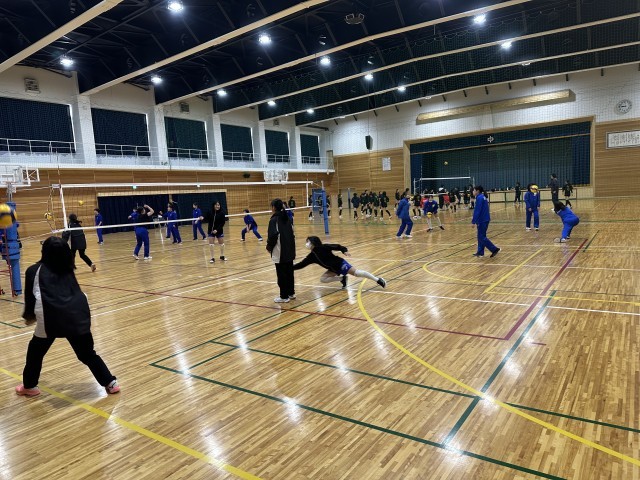 バレーボール部は、朝から速星中学校で練習試合を行っています。