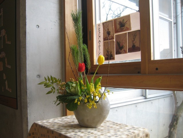 先週、地域の有志の方が季節のお花を生徒玄関に生けてくださいました。いつもありがとうございます。