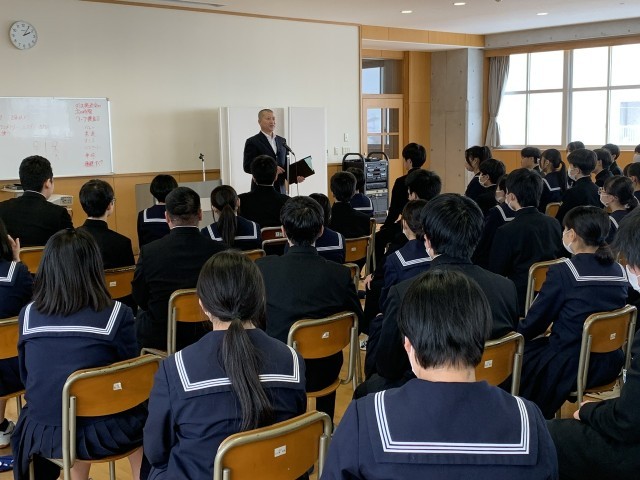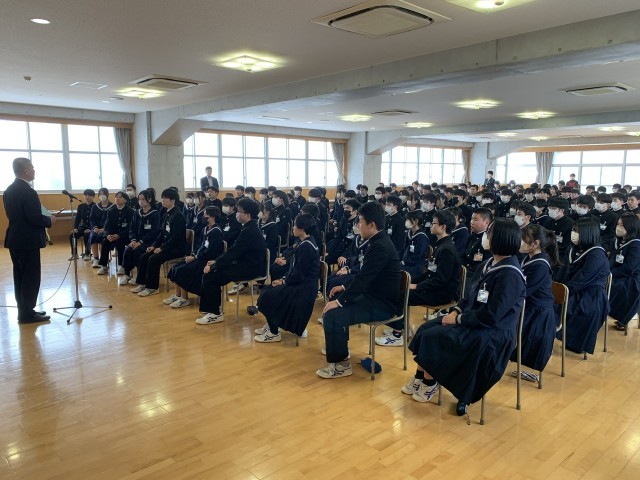 明日の私立高校一般入試に向けた激励会を行いました。校長先生からは、「適度な緊張感、自信をもって本番に臨んでください。合格を願っています」とのお言葉をいただきました。