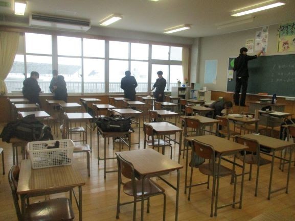 私立一般入試を受験しない生徒は学校に来て、学習や環境整備等の活動をしています。