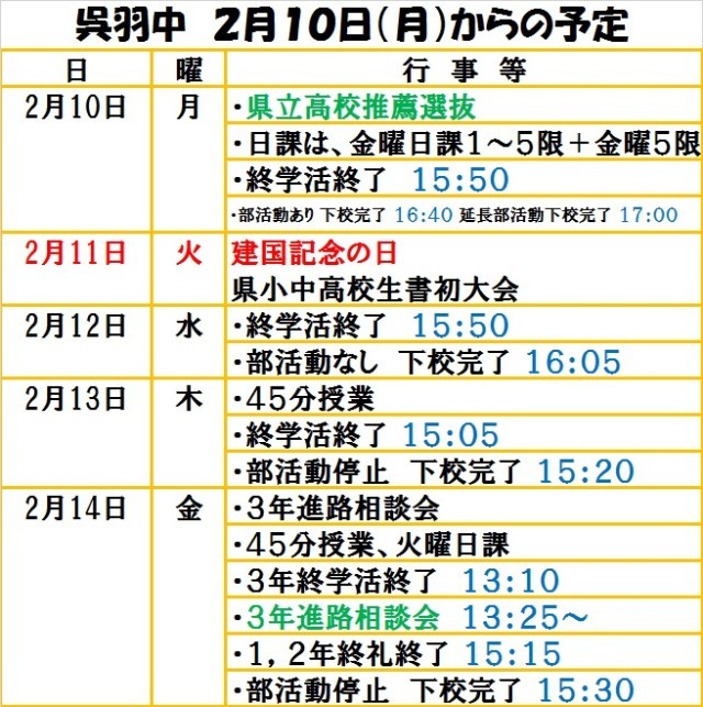 2月10日(月)からの予定