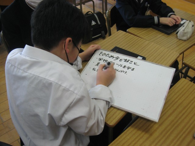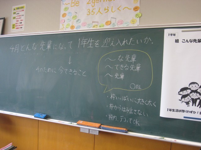 1年生生活は残りあとわずか。3年生の卒業と後輩たちの入学がこの後控えている今、「どのような先輩(2年生)になりたいか」ということを各クラスで話し合いました。4月の進級に向けて、今できることを精一杯、取り組んでいってほしいと思います。