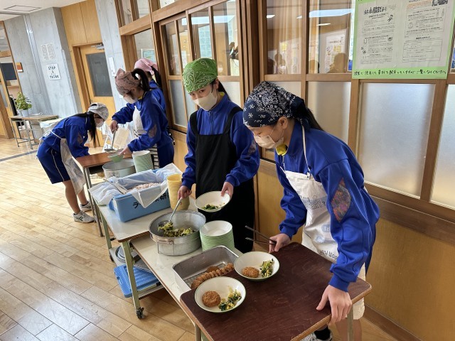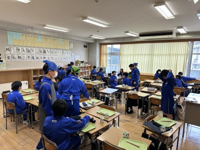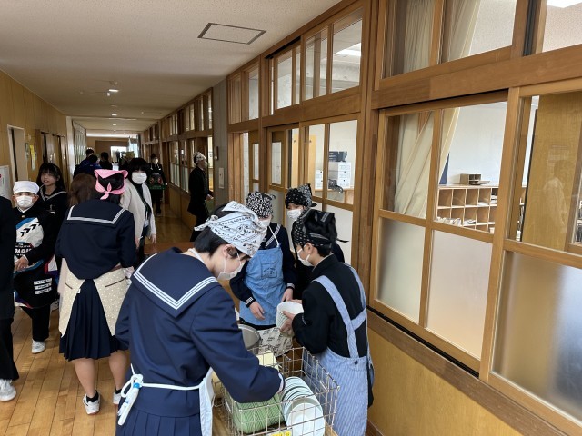 授業が終わり給食の準備しています