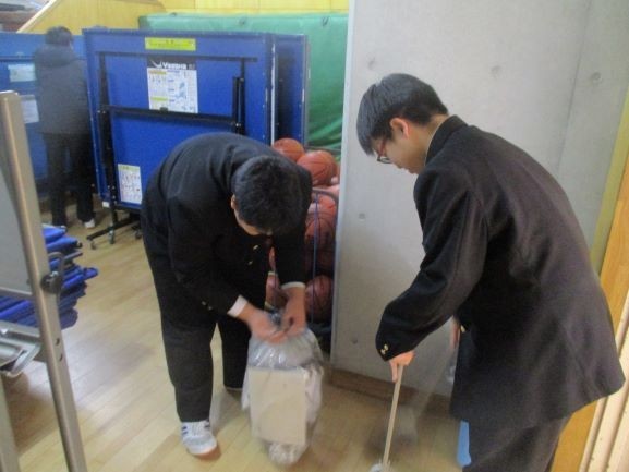 卒業まで残り11登校日です。今日は有志で体育館の器具庫の整理整頓をしています。