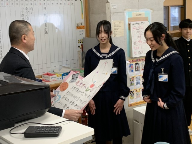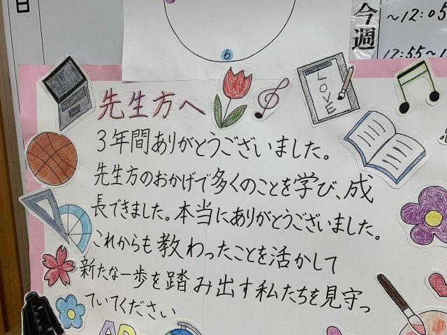 朝、3年生代表から教職員へ感謝の挨拶がありました。