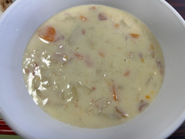 クリームシチューに入っているベーコンがいい味出してます。ポークソテーも美味しいです。