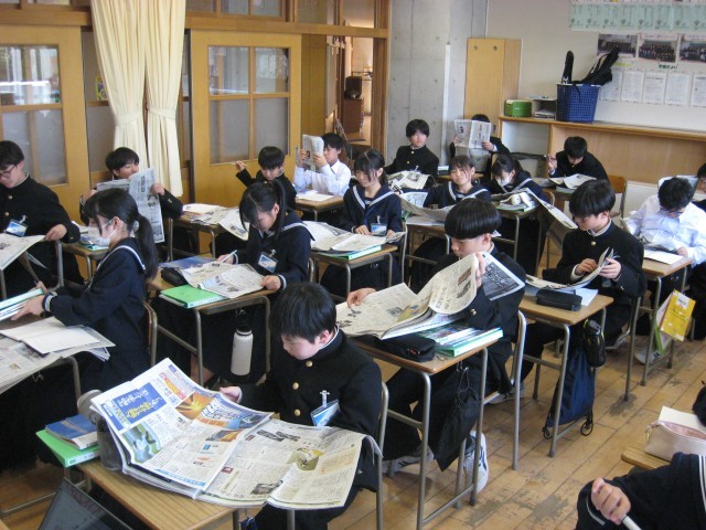 上:社会(新聞からの国名探し) 中:国語(グループ学習) 下:数学(少人数授業)