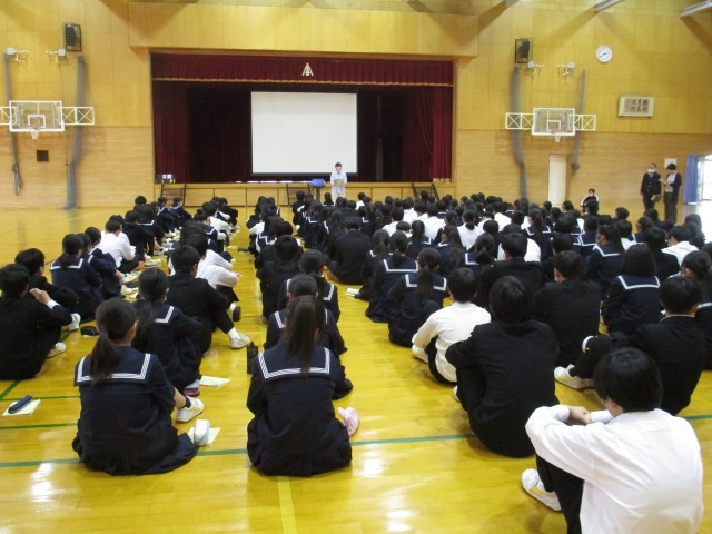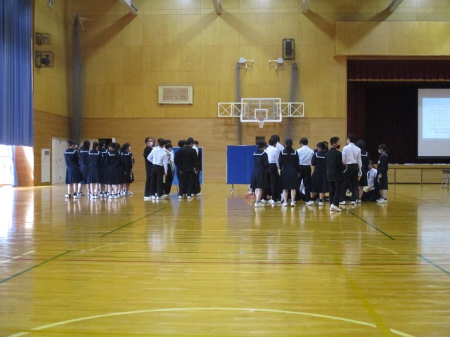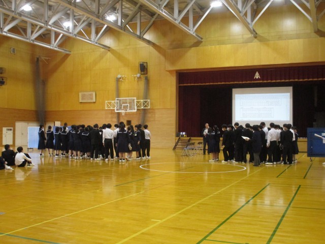 5,6限の総合では修学旅行について学年全体で確認を行いました。
