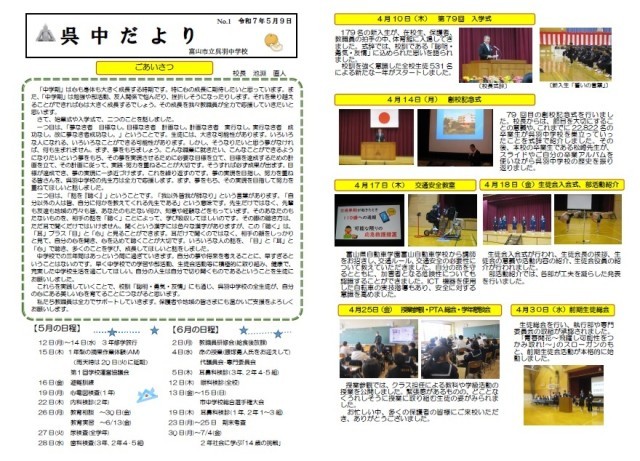 配布文書一覧の呉中だよりをクリックしてカラー版を閲覧することもできます。