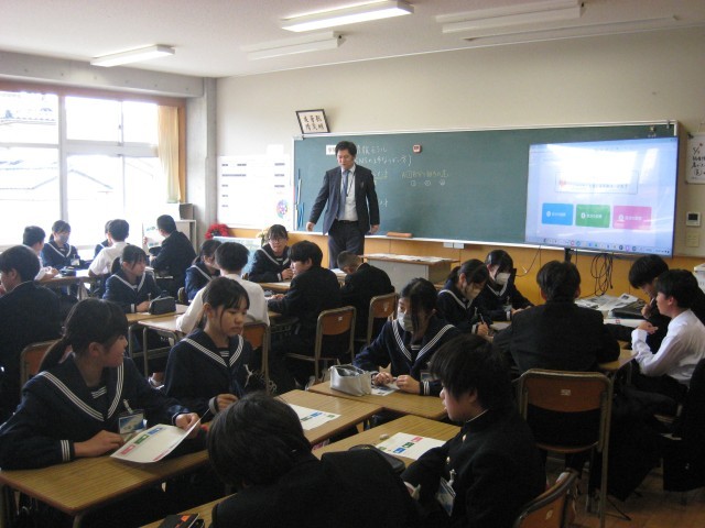 今日の題材は『道徳×情報モラル SNSに友達の悪口を書くと』です。道徳の授業は、担任の“もち味”が特に発揮される時間で、同じ題材について学習していますが色々な授業展開が見られました。生徒たちにとっては馴染みの深いSNS、日頃の体験なども振り返りながら授業に参加している姿が見られました。