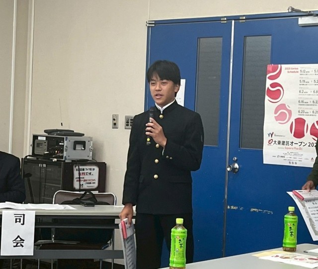 表彰式の最後に硬式テニス部部長が代表として、今年度の更なる活躍を誓いました。